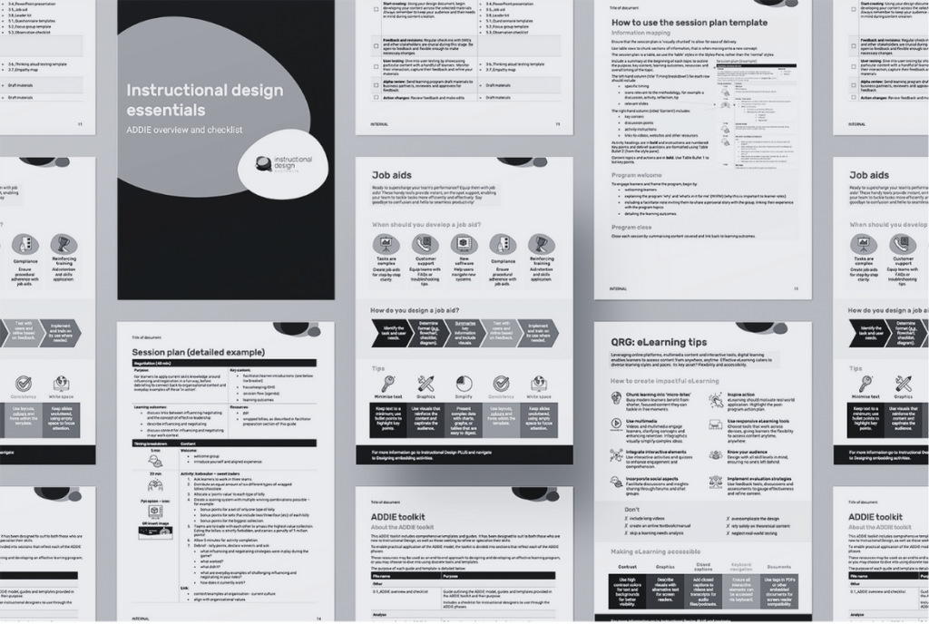 Boîte à outils ADDIE personnalisée : Recevez une série d’outils pratiques et de modèles, y compris des guides et des présentations PowerPoint, tous personnalisés avec la marque de votre organisation.