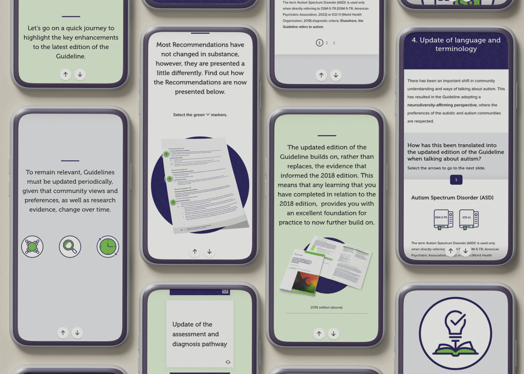 En collaboration avec les responsables du Telethon Kids Institute, nous avons transformé des informations essentielles en cours en ligne attrayants dans lesquels les apprenants ont envie de se plonger. Nous avons agrémenté le tout de graphiques personnalisés adaptés à la marque, en veillant à ce que tout ait l’air net et cohérent. De plus, nos réunions hebdomadaires avec Autism CRC nous ont permis de nous assurer que nous étions tous sur la même longueur d’onde, ce qui s’est traduit par une expérience très fluide et un contenu de grande qualité pour les sept micro-crédits.