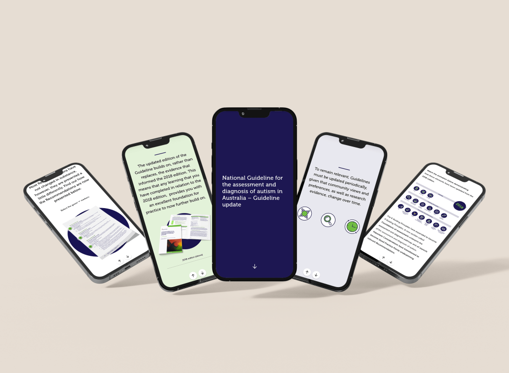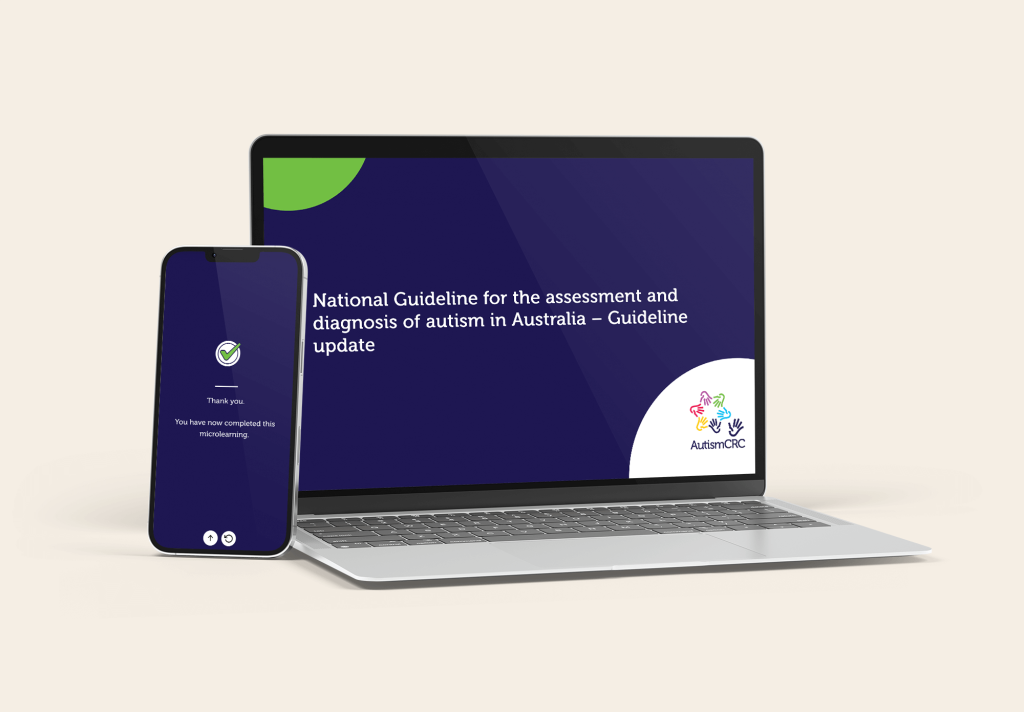 Le diagnostic de l’autisme peut être assez délicat, car il repose en grande partie sur l’expertise des cliniciens. C’est pourquoi la « Directive nationale pour l’évaluation et le diagnostic des troubles du spectre autistique en Australie » est entrée en jeu, en aidant les professionnels à définir le processus. Nous avons fait équipe avec le Telethon Kids Institute, l’Autism CRC et l’Université d’Australie occidentale dans le cadre d’un projet intéressant. Ensemble, nous avons créé sept cours de premier ordre sur les micro-crédits. Et devinez quoi ? Ces cours peuvent même être pris en compte pour l’obtention d’un certificat d’études supérieures en diagnostic de l’autisme à l’université d’Australie-Occidentale.