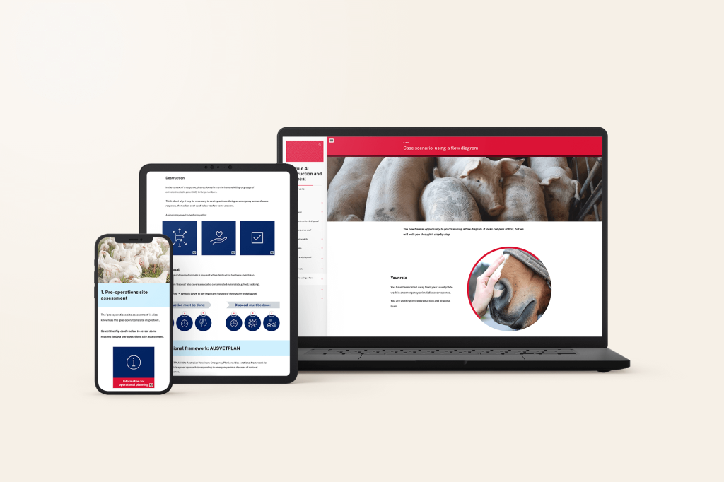 Avant même que nous ayons terminé les deux premiers modules, l’excitation était palpable ! Nous avons été ravis d’être invités à créer quatre autres modules dans le même format attrayant visant à former le personnel pour les futures interventions d’urgence en matière de maladies animales. Il s’agit d’un vote de confiance évident dans notre travail et d’une occasion fantastique de contribuer encore davantage à une cause aussi importante !